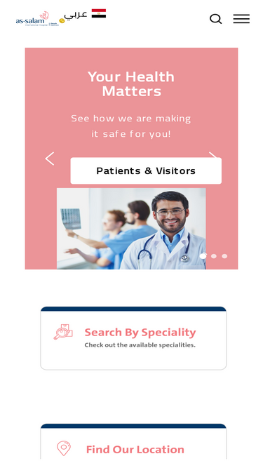 100%Established in 1982, As-Salam International Hospital is a JCI accredited facility in Cairo, Egypt. More than 700 physicians and 400 nurses are working 24/7 to provide our patients with the best medical care. Call 19885 for booking an appointment in the best hospital in Cairo, Egypt.