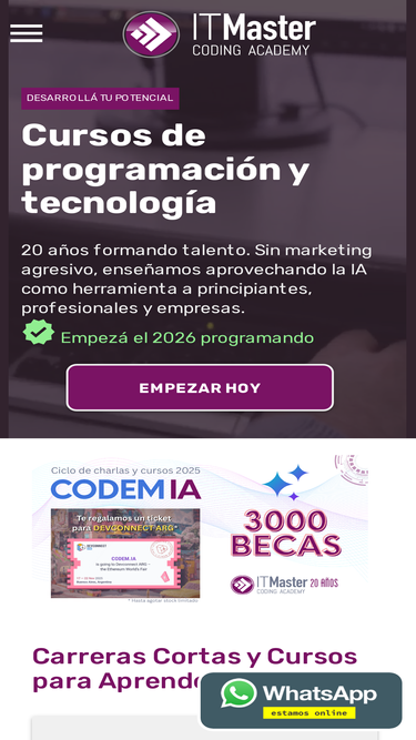 84%➡️ Promoción en ITMaster Academy 🎓. Entrá al mundo frontend de forma intensiva con este exclusivo workshop práctico preview y ¡empezá 2020 siendo Programador Frontend!.