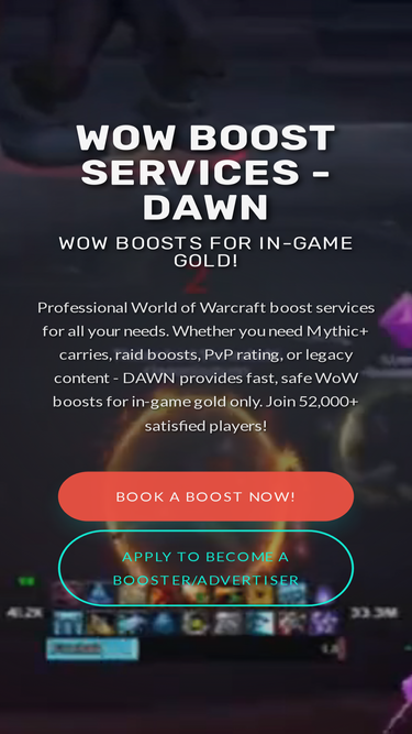 78%Join 51,000+ players in DAWN's WoW boosting community. Professional boosts for in-game gold with gold-back guarantee.