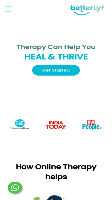 88%BetterLYF offers online counselling and therapy via chat, call, video call for relationships, breakups, marriage, anxiety, parenting, etc from leading psychologists