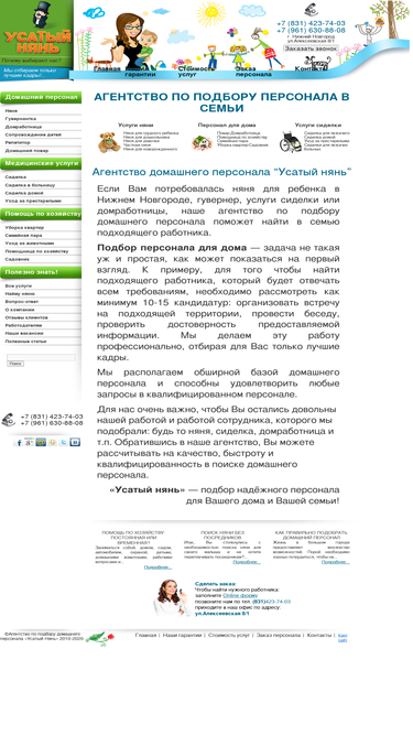 100%: подбор домашнего персонала – няни, домработницы и другие помощники по дому. агентство по подбору домашнего персонала альконти – многоступенчатая проверка персонала, бесплатная замена в течение года. москва, тел. +7(495)506-72-02