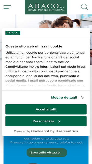82%Sede legaleVia F.lli Cervi, 6 - PadovaTel. 049 625730 - Fax 049 8934545e-mail: info@abacospa.it Sede amministrativaVia Risorgimento, 91 - Montebelluna (TV)Tel. 0423 601755 - Fax 0423 602900e-mail: info@abacospa.it PEC info@cert.abacospa.it Sede OperativaPiazza Vienna, 3 - Montebe