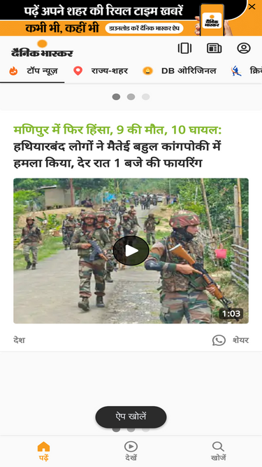 100%dainik bhaskar (दैनिक भास्कर) hindi news samachar - find all hindi news and samachar, news in hindi, hindi news headlines and daily breaking hindi news today and updated from bhaskar.com.