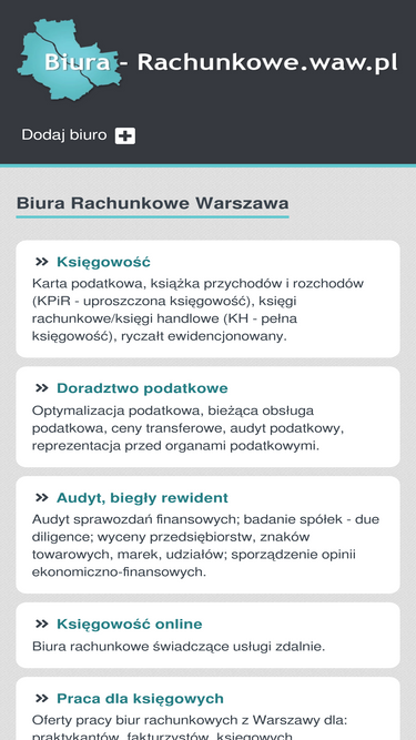 80%biura rachunkowe w warszawie uporządkowane wg dzielnic. znajdź łatwo usługi księgowe w warszawie i okolicach lub prześlij nam swoje zapytanie a bezpłatnie dobierzemy optymalną księgowość do twoich potrzeb!