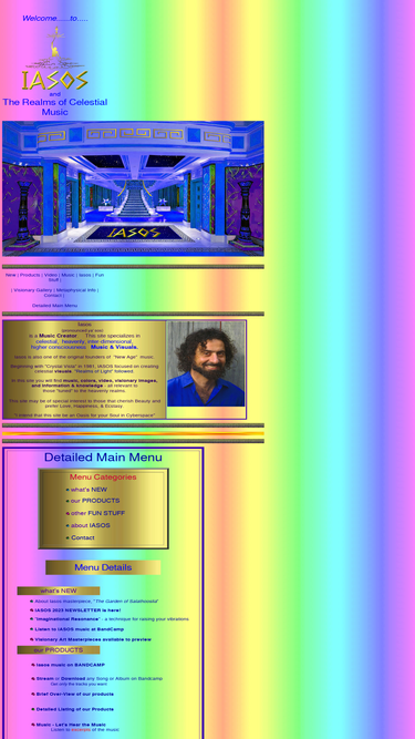 100%website for iasos - one of the original founders of new age music and a leading exponent of celestial music. also features visionary art and spiritual/metaphysical information. focus is on heavenly realms. cds, videos, and cassettes can be purchased on-line.