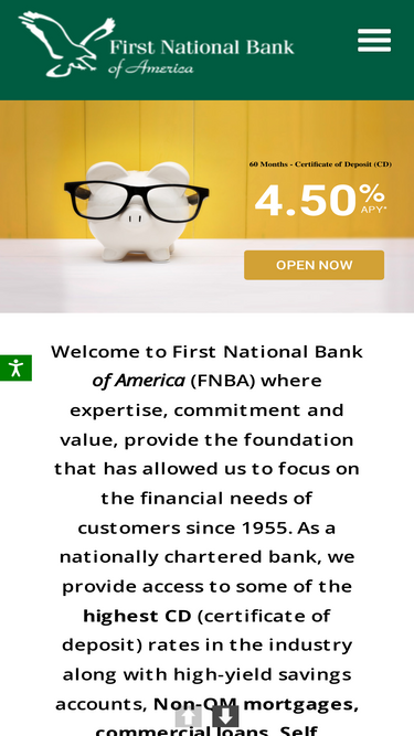 79%Yes. First National Bank of America is a member of the FDIC. Your deposits are insured up to $250,000.00 per account holder, per ownership category. FDIC