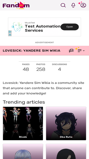 74%Lovesick: Yandere Sim Wikia is a community site that anyone can contribute to. Discover, share and add your knowledge!