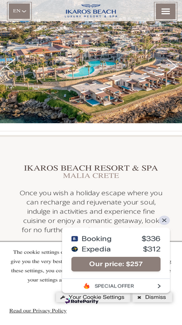 88%Once you wish a holiday escape where you can recharge and rejuvenate your soul, indulge in activities and experience fine cuisine or enjoy a romantic getaway, look for no further than Ikaros Beach Luxury Resort & Spa. Exclusively designed for adults, our resort provides an idyllic space to relish a serene holiday experience. Our blissful atmosphere,
