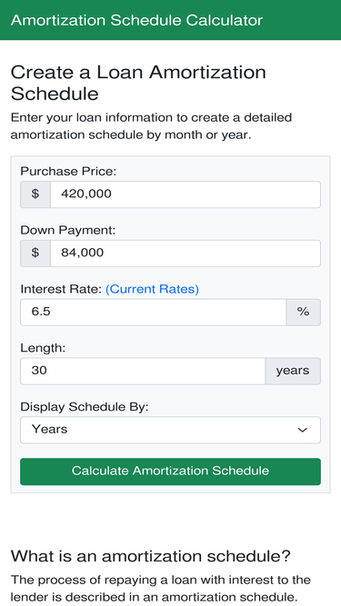 use this calculator to generate a monthly or yearly amortization schedule based on your loan information. it will show you the breakdown of each monthly payment into principal and interest.