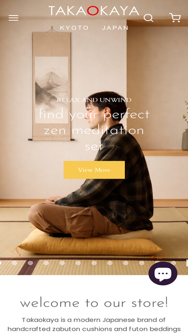 76%The Zabuton (座布団) is a traditional Japanese cushion with nearly 1000 years of history. Originally, the zabuton indicated high status and was only used by a person of high rank. Today it can be found in most Japanese households. Our Kyoto Zabuton Cushion is made true to the traditions of our unique city but it also has been adapted to provide greater stability and comfort. The Kyoto Zabuton Cushion has also been gaining popularity for meditation use. The Ojami cushion is an original cushion developed by Takaokaya over the last decade. The unique shape is inspired by the ancient Japanese beanbag toy called otedama, or ojami in the Kyoto dialect. Handcrafted by our skilled Kyoto craftsman, Ojami cushions come in a variety of colors, fabrics, and sizes to suit your preference and lifestyle.Aizome (藍染め) is the Japanese word for indigo dye. The dye is naturally extracted from the leaves of the Indigofera Tinctoria plant, which creates a beautiful indigo shade of blue. Our Aizome-Fu fabrics with traditional Japanese patterns are meant to replicate that same beautiful look that the indigo dye creates. Product Details:: Kyoto Zabuton Cushion:Sizes (Approx.): M (55×59 cm), L (59×63 cm)Fabric: 100% CottonTassel: 100% SilkFilling: 100% Cotton Filling weight: 1.2kg / 1.4kg Ojami Cushion:Sizes (Approx.) : Φ35cm (S), Φ40cm (M)Fabric: 100% CottonTassel: 100% SilkFilling: 70% Cotton, 30% Polyester / Core: Polyurethane*Size in the picture Kyoto Zabuton Cushion (M) and Ojami Cushion (M).
