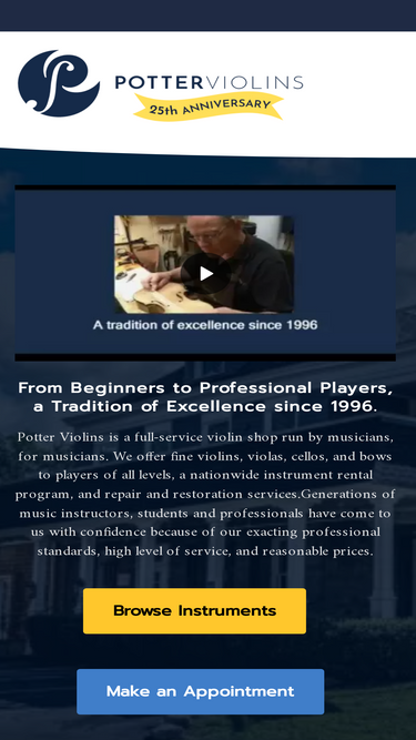 72%potter violins is a full service shop dedicated to teachers, students, and players of all levels. instrument rentals, repairs and restoration, and sales.