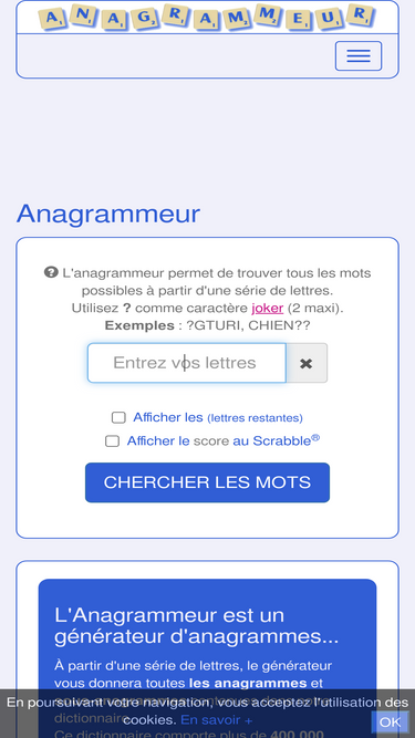 anagrammeur.com est un anagrammeur gratuit en ligne. anagrammes en ligne gratuit et aide aux jeux de lettres : scrabble, mots-croisés, mots-fléchés...