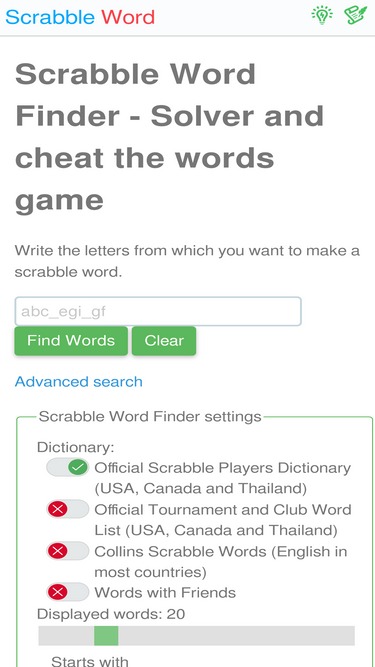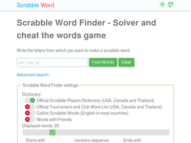 scrabble word finder - quick solution to the scrabble game. get all the possible scrabble words quickly with points, explanations and similar words.