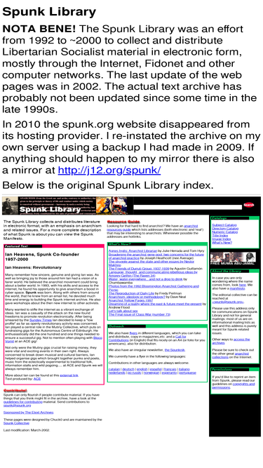 100%Serving anarchists since 1996, host and portal to sites with content on anarchism and related -isms or wasms, on anarchists such as Proudhon, Bakunin, Rocker, Goldman, Tolstoy, Stirner, and Tucker, and on such related topics as direct action, freedom, solidarity, equality, non-hierarchy, and direct democracy.