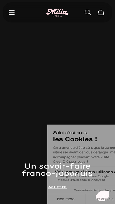 78%Milia Matcha est une marque franco-japonaise fondée en 2023 par Andie Ella. Nous proposons des matchas cérémonie d’exception, classiques ou aromatisés, sans sucre ni amertume, ainsi que des fouets et notre Matcha To Go pour savourer votre matcha où que vous soyez.
