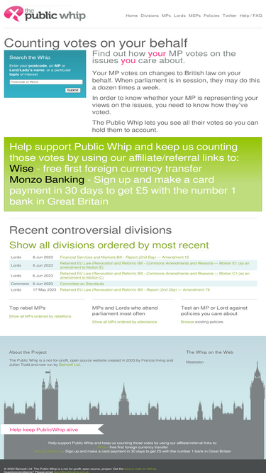 100%Making it easy to keep an eye on the UK’s parliaments. Discover who represents you, how they’ve voted and what they’ve said in debates.