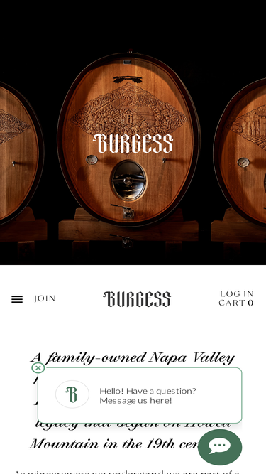 90%Immerse yourself in the Burgess Society, a membership built on tradition and inspired by our future in sustainable winemaking. Established for Burgess enthusiasts, the Burgess Society brings our Napa Valley wine collection to your home each spring and fall, customized to your preferences.