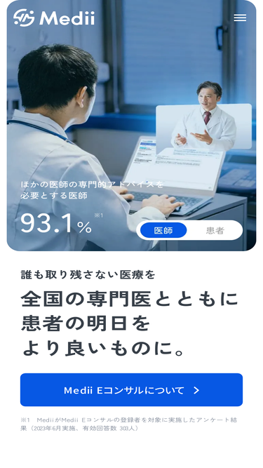 100%株式会社Mediiは「誰も取り残さない医療を」をミッションとして、特に課題の大きな希少疾患や指定難病を中心とした専門医の知見をオンラインで拡げる事業を展開しています。