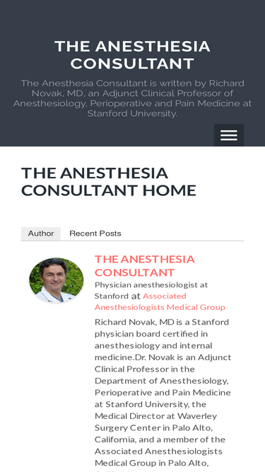 79%The Anesthesia Consultant is written by Richard Novak MD, an anesthesiologist at Stanford University. Content is for both laypeople and medical specialists.
