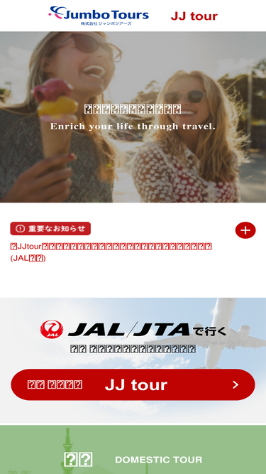 87%国内、海外の格安旅行ならジャンボツアーズ!充実のツアー内容で、海外・国内の旅行を通じて「感動」や「喜び」を提供し続けられると確信し、尽力し続ける旅行会社です