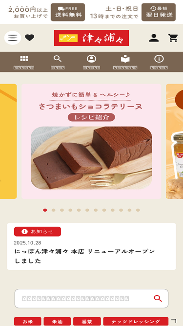 100%平素より「にっぽん津々浦々 本店」をご利用いただき、誠にありがとうございます。2025年10月28日より、オンラインショップをリニューアルオープンいたしました。快適にお買い物をお楽しみいただけるよう、新機能を追加しております。 リニューアルのポイント 買うたびにお得に。「津々浦々倶楽部」による会員ランク制度 スマホからももっと買いやすく!LINE連携で発送通知などをお受け取りできます。 おすすめ商品や特集記事など、読み物コンテンツも充実! これからのお買い物について リニューアル後も、これまでと同じURLでご利用いただけます。https://www.tsutsu-uraura.jp/一部の機能については順次改善を行っております。画面