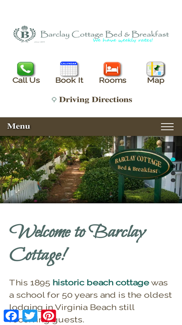100%welcome to barclay cottage bed and breakfast, your first choice for an ideal getaway when looking for relaxation, rest, and romance in virginia beach, va. our coastal b&b is conveniently located near attractions and activities at the boardwalk, the oceanfront, and the vibe arts district.