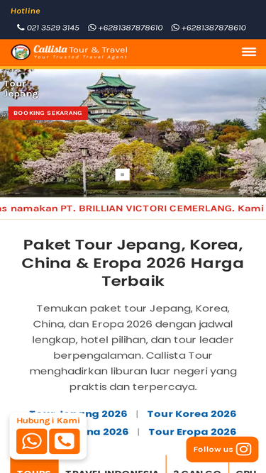 85%250+ paket wisata domestik & internasional, harga hemat, dan terpercaya. Bersama Callista Tour, liburan jadi mudah & menyenangkan. Booking sekarang!