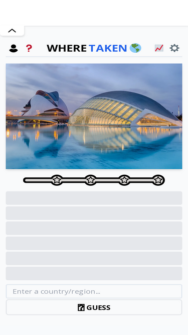 86%the ultimate global geography trivia game. guess the country/region from a photograph, plus three bonus round! new game daily!
