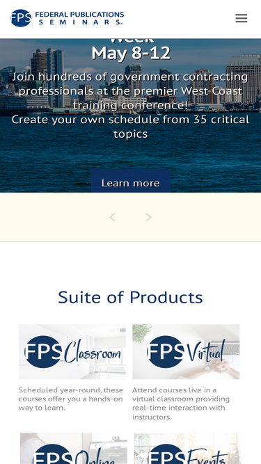 100%federal publications seminars (fps) is the 60+ year leader in government contracts training. fps offers virtual, classroom and on-demand/online...learn more now