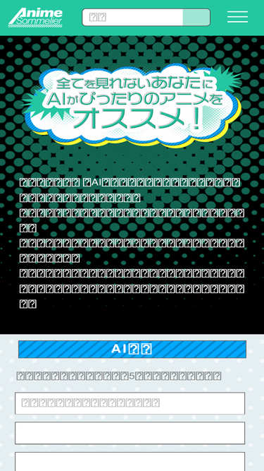 71%アニメソムリエはソムリエのようにAIがあなたにぴったりのアニメをオススメしてくれるレコメンデーションサービスです。なにをどこまで見たか視聴記録を残すこともできます。アニメ情報も充実しています。本当におもしろいアニメを知りたい人、よくある人気ランキングだとしっくり来ない人に最適です。