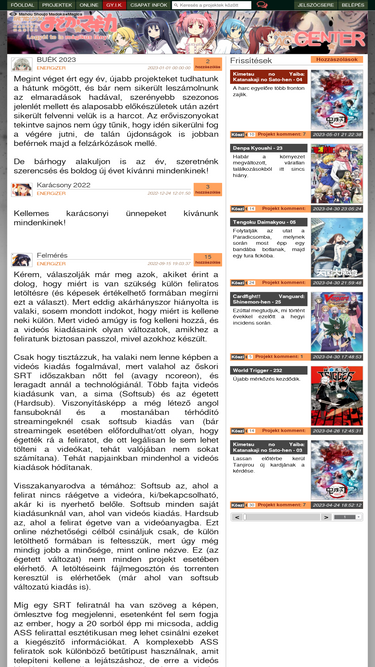 79%Létszámunkat tekintve Magyarország legtöbb animéjét és mangáját foglalkoztató oldal vagyunk. A csapat az évek alatt egyre bővült, és a minőség is folyamatosan javult, így lehet, hogy jelenleg az ország kiemelkedően népszerű fansub oldalai közé tartozunk.