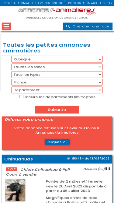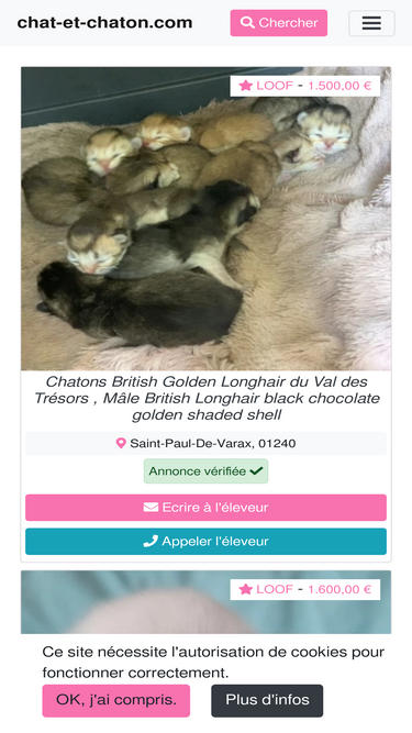 100%Eleveurs de chiens et de chats : Tous les services pour acheter votre chiot ou votre chaton de race issu d'un élevage sur le 1er réseau animalier de France.