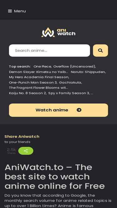 98%Watch your favorite anime online in Dub or Sub format without registration on Aniwatch.to fastest Streaming server NOW.