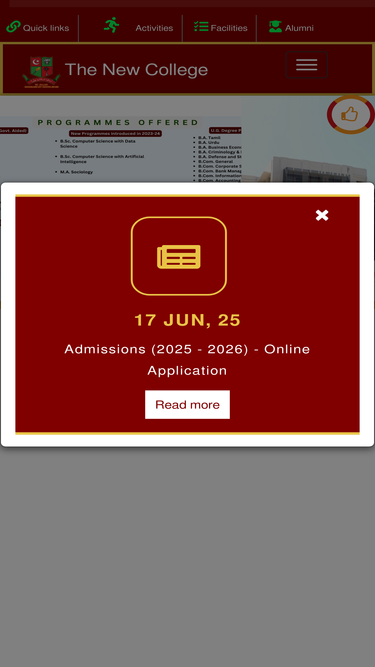 the new college,established in 1951, the new college is sponsored by the muslim educational association of southern india, a premier institution which has been endevouring, since 1902, to lift the members of the community out of their educational backwardness and bring them the benefit of higher education
