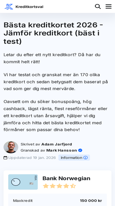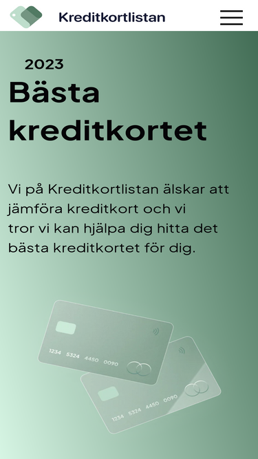 Kreditkortlistan är en jämförelsesajt som jämfört kreditkort i 12 år . Hos oss hittar du kreditkort, bankkort, resekort och bensinkort.