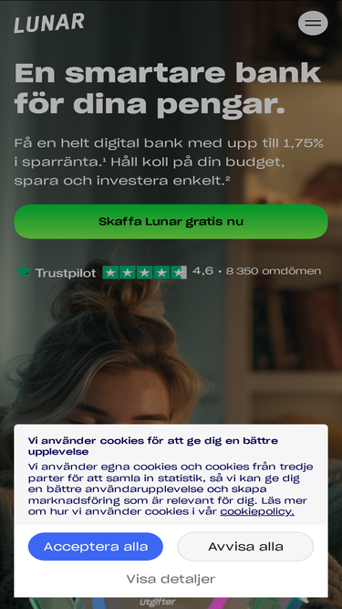 51%Kontakta oss via chatten i Lunar-appen, via email eller ring till oss. Vi är här för att hjälpa till och kan nås alla veckans dagar.