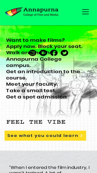 annapurna college of film and media is india's finest film college that's inside south india's most popular movie studio. want to make cinema? then learn to make cinema