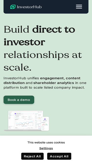 87%investorhub's software gives public companies more control through better shareholder engagement.