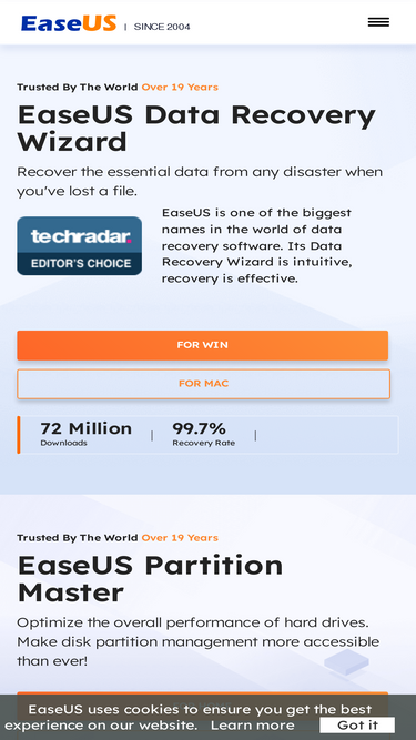93%EaseUS offers various software utilities to safeguard your data and improve productivity, including data recovery software, backup software, partition manager, data transfer tool, video editor, and recorder.