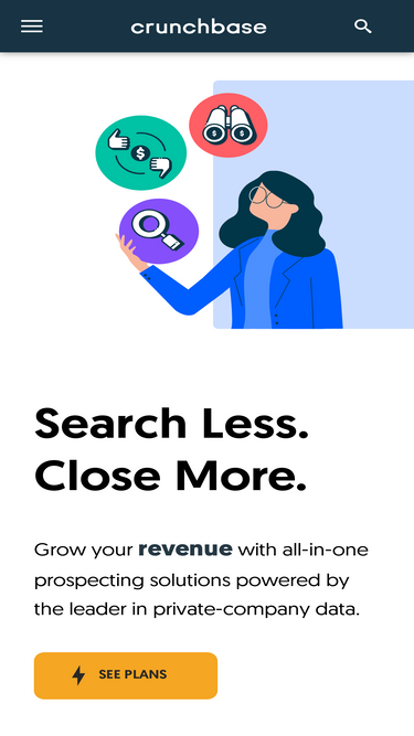 74%Crunchbase is a predictive solution that provides intelligence on private companies, powered by the unique combination of live private company data, AI, and market activity from over 80 million users. We predict private market movements that matter to help investors, dealmakers, and analysts make the right decisions.