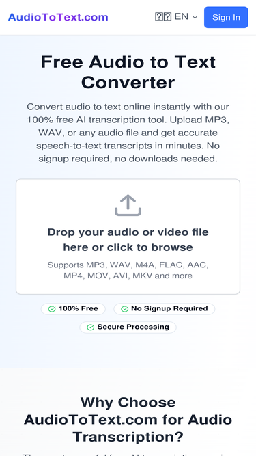 90%Your privacy is our priority. At AudioToText.com, we safeguard your data with strict security measures and transparent policies you can trust. Read our Privacy Policy to learn more.
