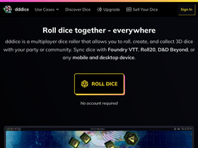 82%roll 3d dice for tabletop roleplaying games live in your browser. invite friends to roll live or connect with tools such as roll20, foundry vtt, and d&d beyond to bring your dice collection everywhere.