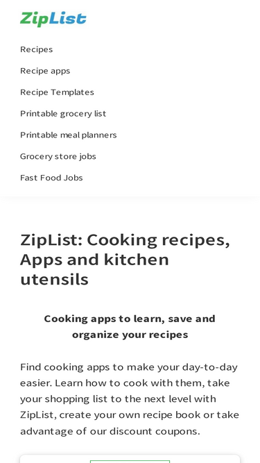 100%ZipList: Cooking apps to learn, save and organize your recipes Find cooking apps to make your day-to-day easier. Learn how to cook with them, take your shopping list to the next level with ZipList, create your own recipe book or take advantage of our discount coupons.
