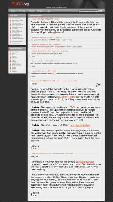85%aodb.us's top 5 competitors in March 2026 are: auno.org, forums.anarchy-online.com, , , and more.