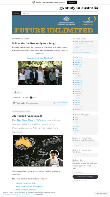 gostudyinaustralia.wordpress.com ranks as the 4th most similar website to apexstudent.com and studyoverseasglobal.com ranks fifth in January 2026.