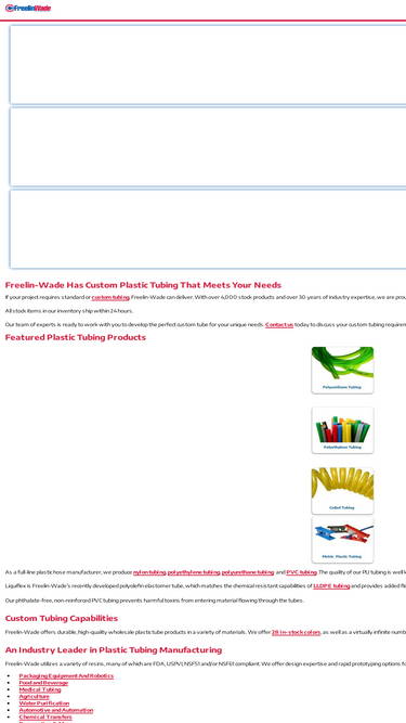 98%freelin-wade offers wholesale and custom plastic tubing with fast shipping times. order nylon, polyethylene, polyurethane and pvc tubing from freelin-wade.