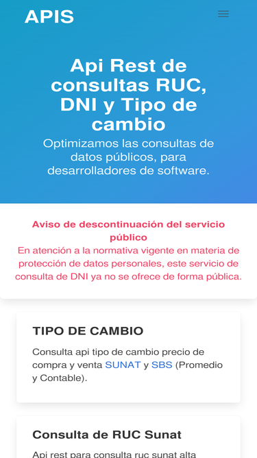 apis net pe para desarrolladores de consulta ruc api, consulta dni api, tipo de cambio sunat
