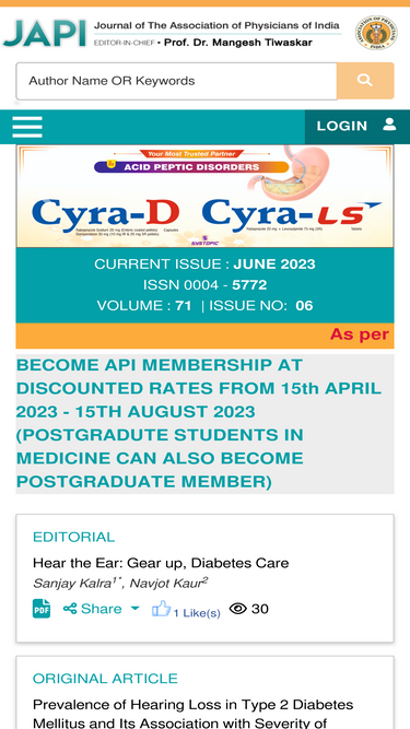 journal of the association of physicians of india is a monthly scientific journal started in 1952. the journal reaches over 22000 members of the association of physicians of india every month and benefits millions through the online version.