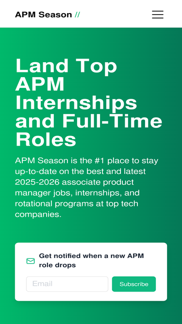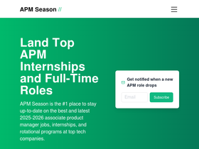 100%Never miss a product management job application with APM Season. Stay up-to-date on the best and latest 2025-2026 APM programs and internships for aspiring product managers!