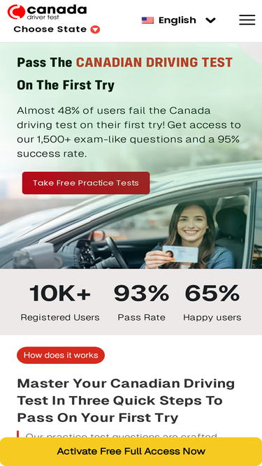 82%Test de conduite Canada - Préparez-vous à prendre la route ! Préparez-vous à votre examen de conduite canadien avec des questions et des ressources pratiques gratuites spécifiques à votre province.
